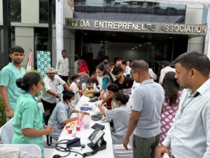 नोएडा एंटरप्रेन्योर्स एसोसिएशन (एनईए) और नोएडा डायबेटिक फोरम ने संयुक्त रूप से सेक्टर 6 स्थित एनईए कार्यालय में निःशुल्क चिकित्सा परामर्श और स्वास्थ्य जांच शिविर का आयोजन किया।