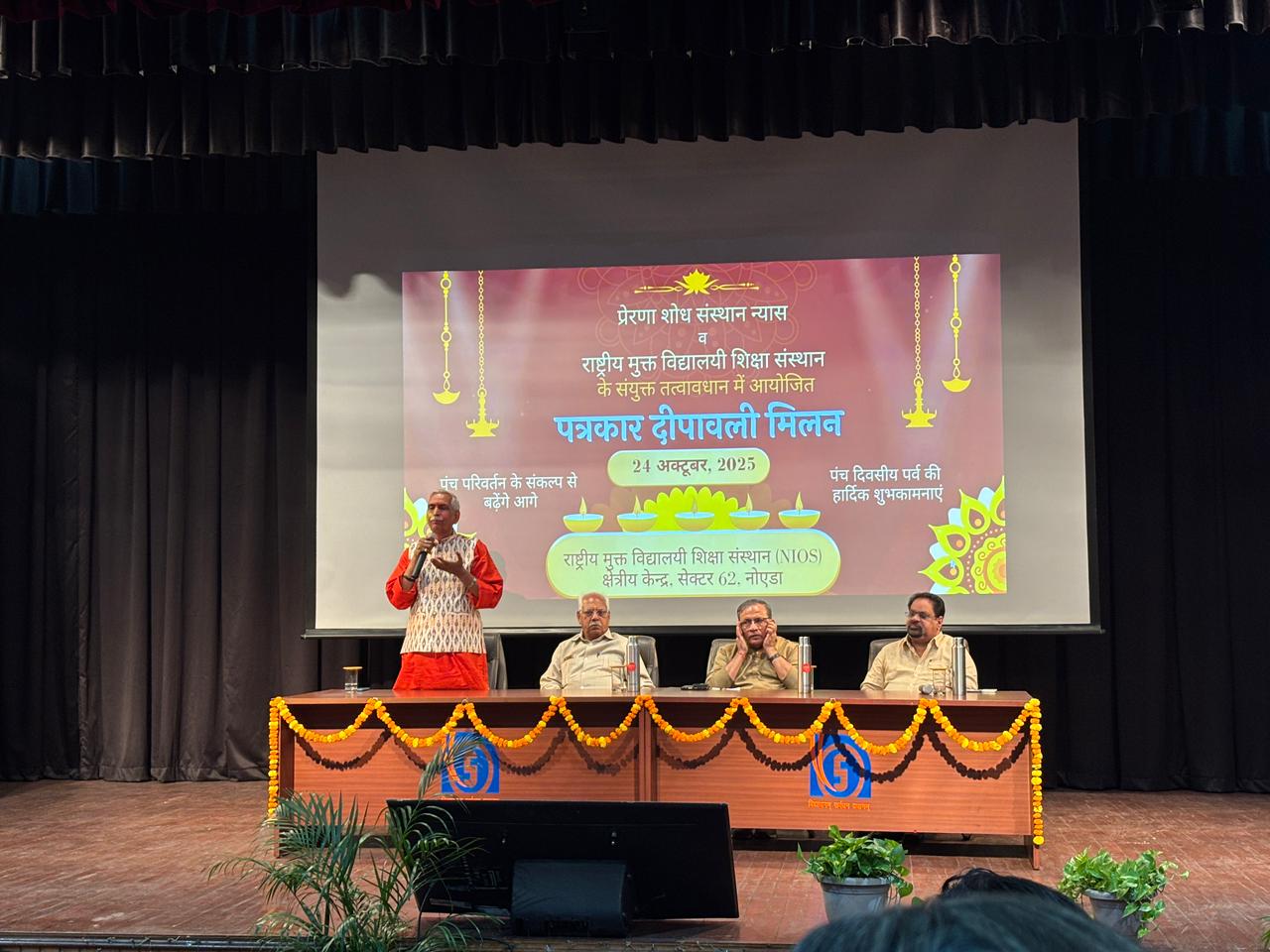 प्रेरणा शोध संस्थान न्यास और राष्ट्रीय मुक्त विद्यालयी शिक्षा संस्थान (NIOS) के तत्वावधान में शुक्रवार को सेक्टर-62 स्थित एनआईओएस क्षेत्रीय केंद्र में “पत्रकार दीपावली मिलन” कार्यक्रम का आयोजन हुआ। 200 से अधिक पत्रकारों की उपस्थिति ने इस आयोजन को उत्साह, आत्मीयता और विचार-प्रधानता से जीवंत बना दिया।