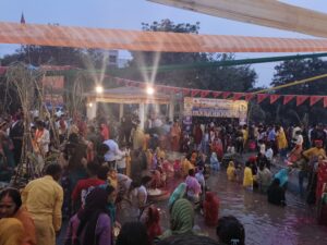 छठ घाट को तोरण, पताकाओं और फूलों से आकर्षक रूप से सजाया गया था, जिसमें गंगाजल और गुलाब की पंखुड़ियों ने विशेष आकर्षण जोड़ा। महोत्सव में छठी मैया के भजनों से वातावरण भक्तिमय हो उठा। कई व्रती दंडवत प्रणाम करते हुए छठ घाट पहुंचे। अर्घ्य अर्पण के बाद नामचीन गायकों ने देर रात तक भजनों की प्रस्तुति देकर श्रद्धालुओं को झूमने पर मजबूर कर दिया।