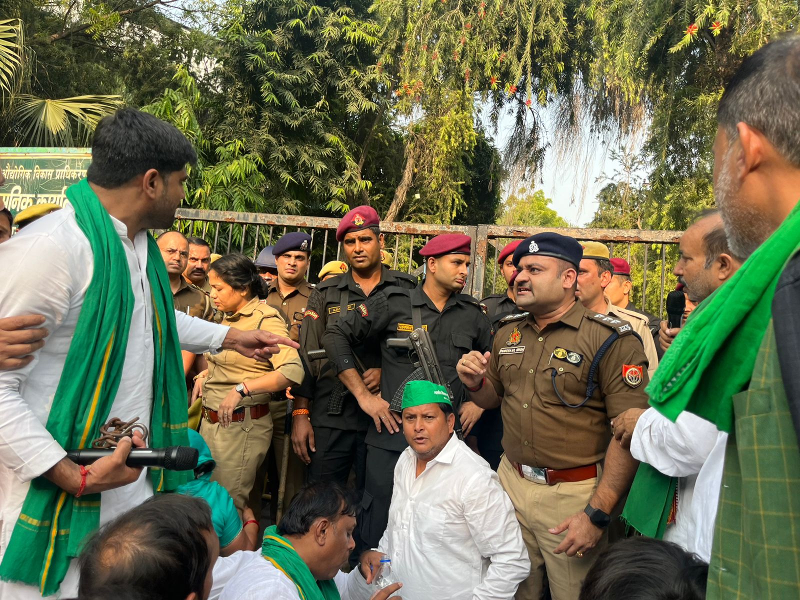 लगभग 3 बजे किसान धरना स्थल से प्राधिकरण कार्यालय की ओर बढ़े, जहां पुलिस और किसानों के बीच तीखी नोकझोंक व धक्कामुक्की हुई। पुलिस प्रशासन के उच्च अधिकारियों के हस्तक्षेप के बाद किसान शांत हुए और वापस धरना स्थल पर लौट आए।
